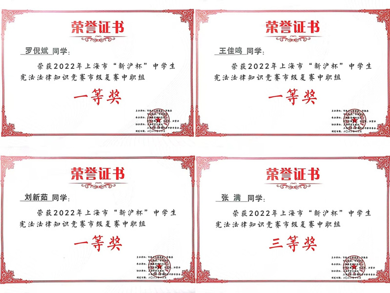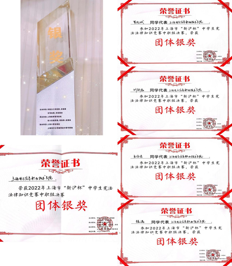12月9日,永利官网五年一贯制学生在由上海市教卫工作党委、上海市教委、上海市司法局、上海市法宣办主办的2022年上海市“新沪杯”中学生宪法法律知识竞赛中,喜获得中职组决赛团体银奖的好成绩。