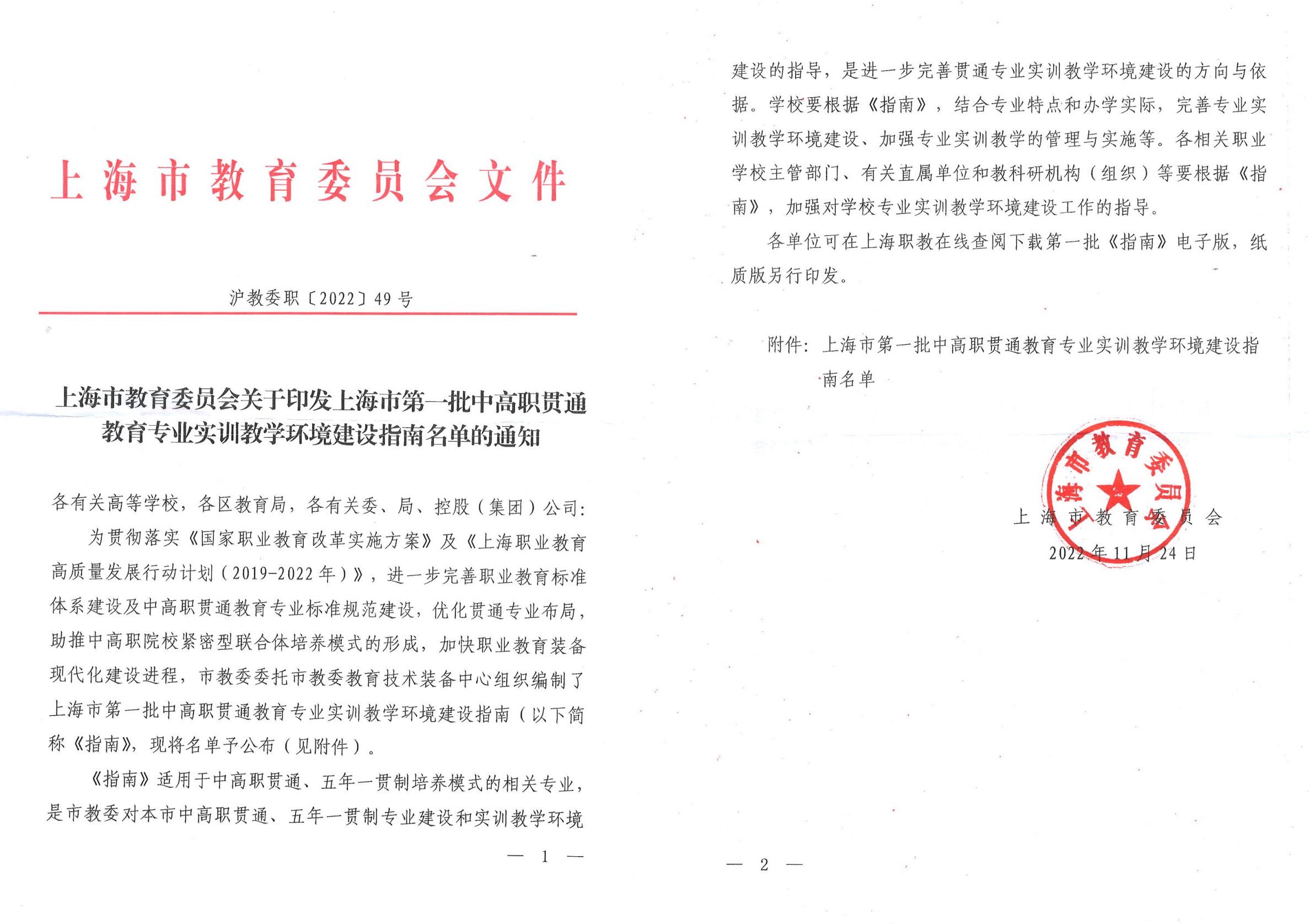 日前,上海市教育委员会发布了《上海市第一批中高职贯通教育专业实训教学环境建设指南》,其中智能机器人技术、工业机器人技术和集成电路技术3个专业的部分为永利官网相关教师主持编制。
