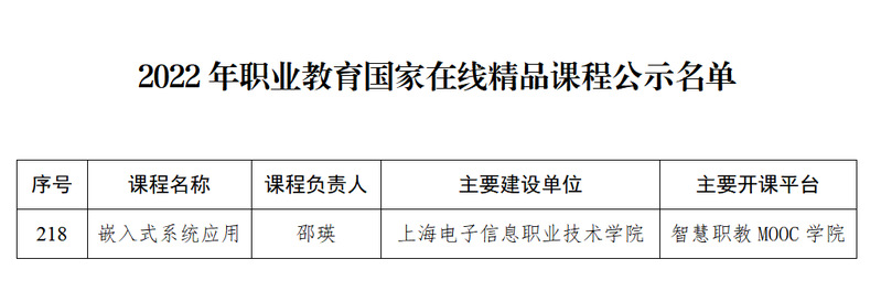 近日,教育部公示了2022年职业教育国家在线精品课程的名单。永利官网电子技术与工程学院邵瑛老师的《嵌入式系统应用》在线课程成功入选,一举实现永利官网在国家精品在线课程方面零的突破!