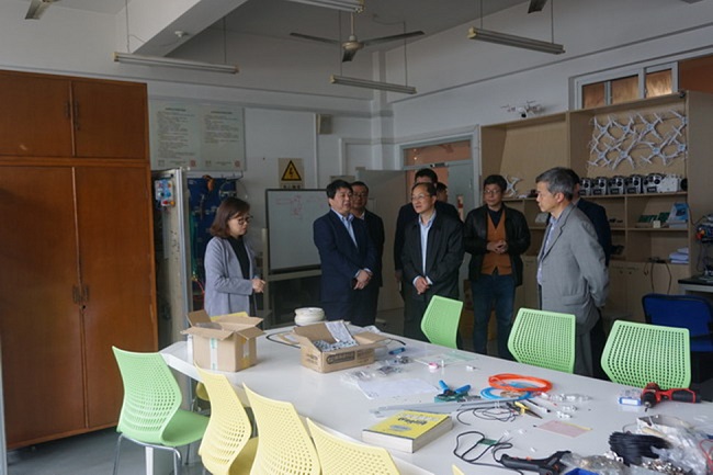 4月28日,苏州工业职业技术学院党委书记王新华、党委副书记、副院长曹建东、纪委书记林长永等一行来永利官网访问交流。 永利官网党委书记田钦陪同客人参观了永利官网中...