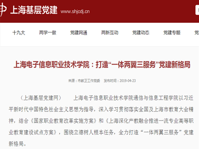 上海基层党建网、上海教卫党建网对学院《通信与信息工程学院党总支打造“一体两翼三服务”党建新格局》进行报道
