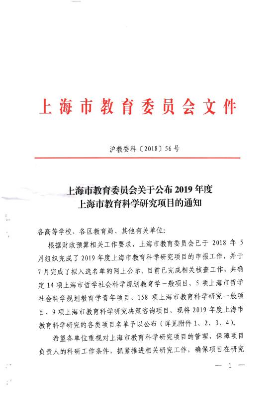 永利官网获批2019年度上海市教育科学研究项目课题一项