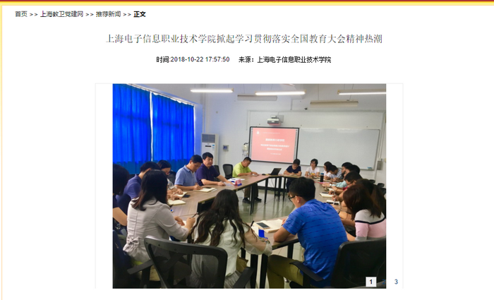 上海教卫党建网10月22日对永利官网掀起学习贯彻落实全国教育大会精神热潮进行报道