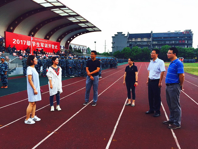 8月30日,学校党委书记田钦、学校校长杨秀英、学校副校长徐德明,在军训团相关人员的陪同下,来到军训场地,了解军训情况,看望慰问2017级参训学生、承训教官及军训管理人员等。 校领导观看了学生的训练,...
