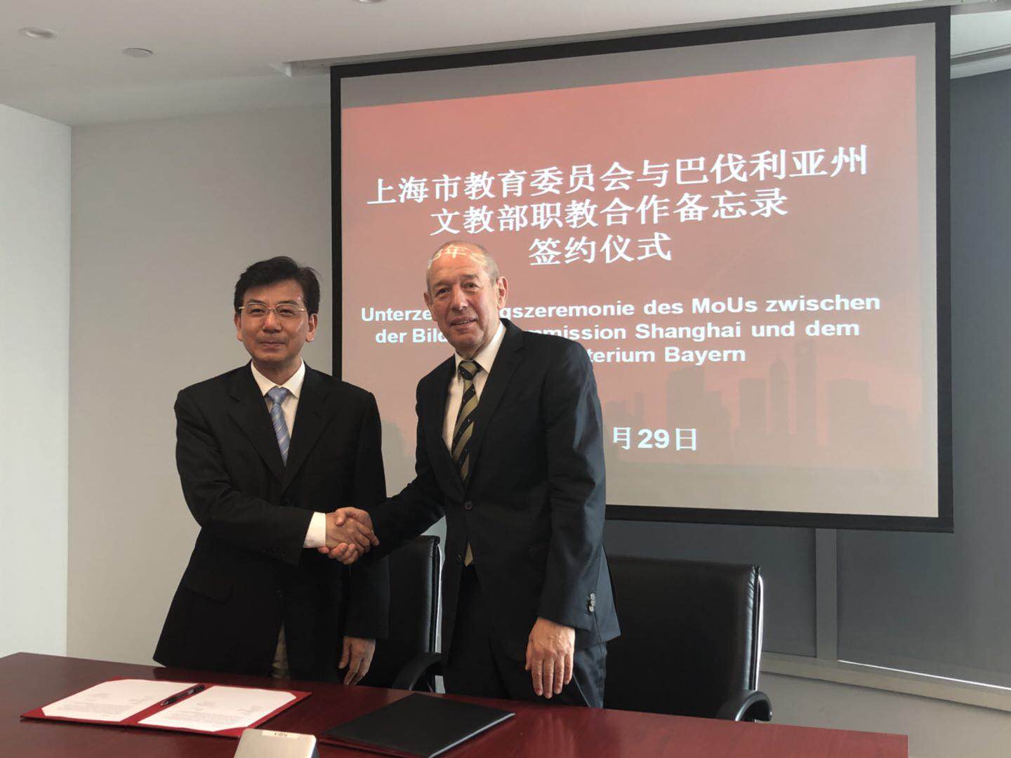 上海市教育委员会与德国巴伐利亚州文教、科学与艺术部签署中德职业教育框架合作备忘录