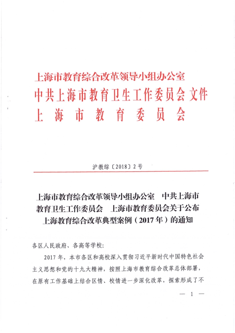 永利官网深化综合改革案例入选上海教育综合改革典型案例(2017年)