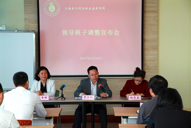 2017年5月10日,学校在奉贤校区A205召开yl23455永利官网领导班子调整宣布会。市教卫工作党委组织干部处处长罗立刚,学校党委书记、校长杨秀英、党委副书记、副校长顾剑锋、副校长吴依本、副校长张涛,...