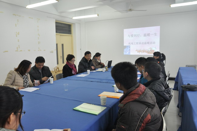 12月24日下午,学院机电工程系“与爱同行,温暖一生”冬季送温暖活动在TCN514会议室顺利举行。学院党委书记、院长杨秀英老师参加活动。 活动首先由机电工程系单贵老师介绍参加活动人员及活动内容,接着院...