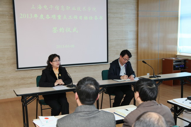 3月8日上午,学院举行2013年度各项重点工作目标任务书签约仪式,学院领导杨秀英、顾剑锋、徐松鹤、严晓华、吴依本、周俊瑜等分别与主管副院长、党支部代表、部门代表签订了2013年党委工作、行政工作、党支部工作...