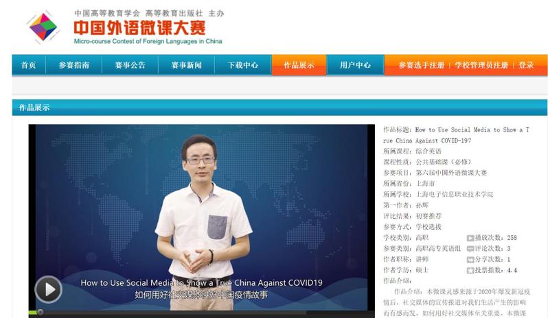 永利官网外语教师喜获全国高校教师教学创新大赛暨第六届外语微课大赛上海赛区二等奖