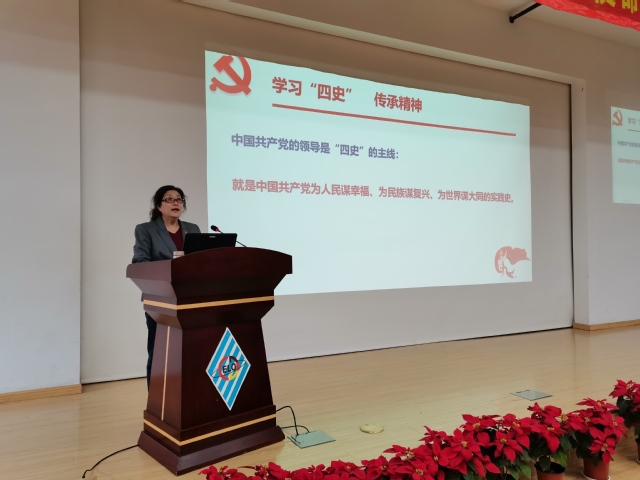 校党委副书记、校长杨秀英主讲“学习‘四史’传承精神,努力实现中华民族伟大复兴”专题党课