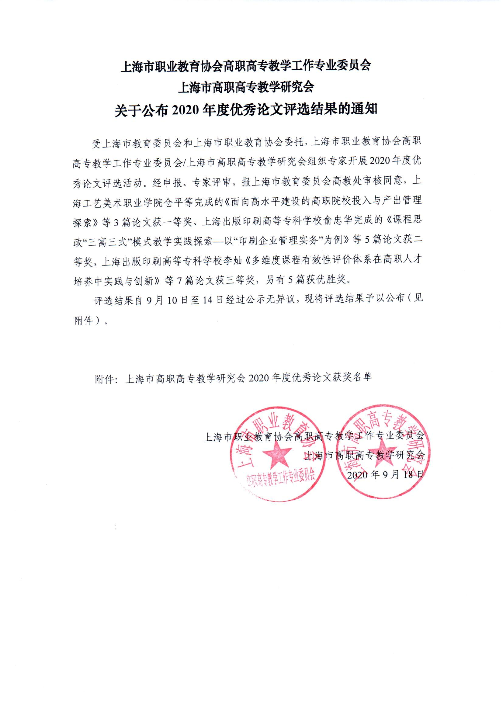 永利官网教师获上海市高职高专教学研究会优秀论文奖