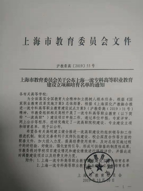 2019年10月30日,依据《上海市教育委员会关于公布上海一流专科高等职业教育建设立项和培育名单的通知》(沪教委高〔2019〕55号),永利官网入选上海一流专科高等职业教育建...