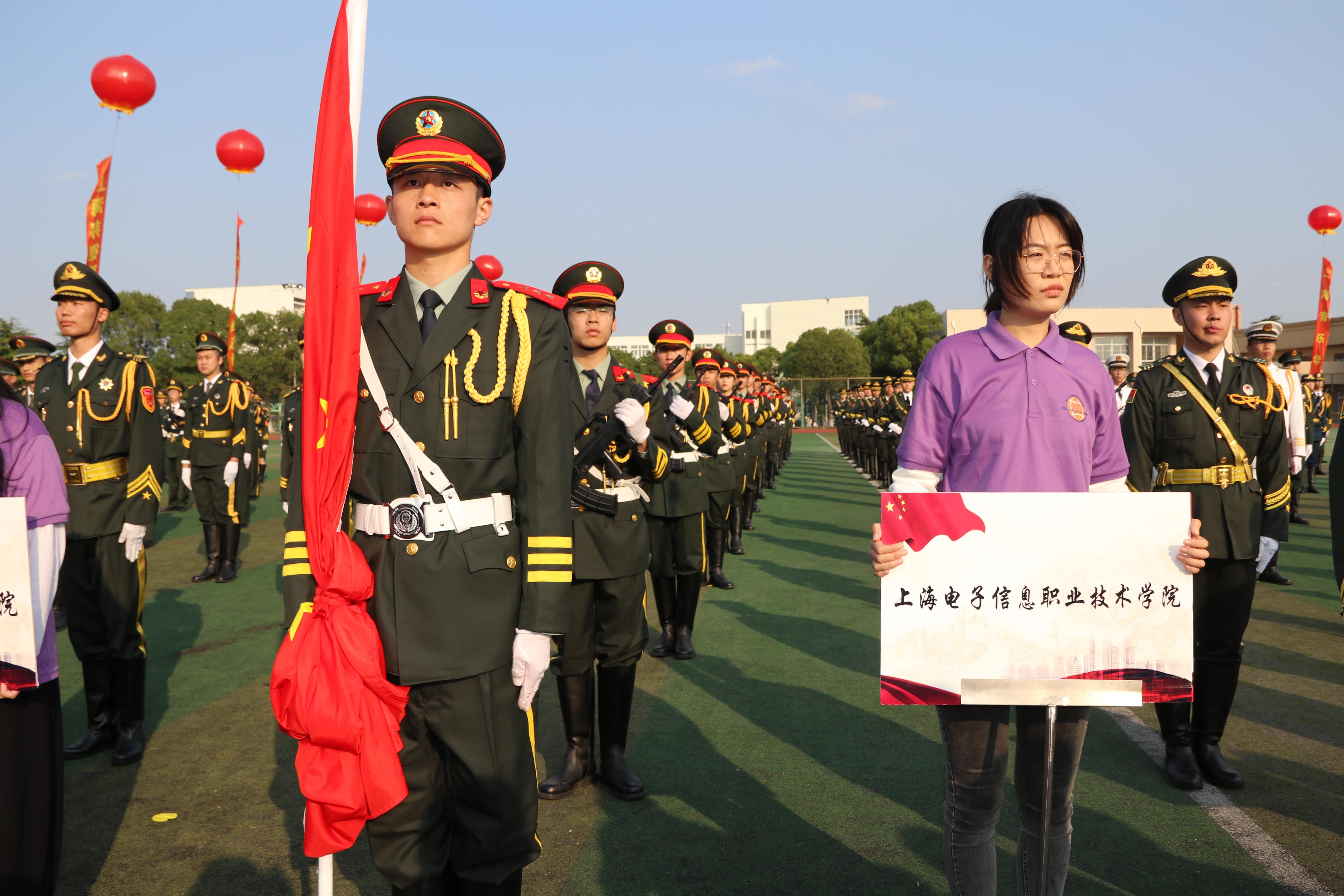 为庆祝中华人民共和国成立70周年,2019年10月19日,由上海市教育委员会、上海市国防教育办公室、上海警备区学生军训办公室主办的“青春旗帜——向祖国致敬”第二届“上海杯”大学生国旗班升国旗展示活动在上海工商...