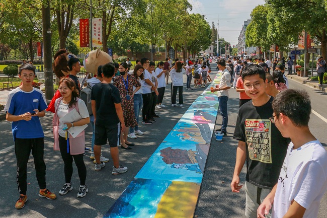 2019年10月14日-10月20日,党委学生工作部、党委宣传部、马克思主义学院在学校奉贤校区B楼大厅联合举办了“青春告白祖国——百米长卷绘征程”画展暨“不一样的思政课”微课堂活动。百米长...