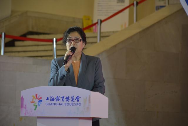 上海市教卫工作党委书记虞丽娟参观教博会长三角电子信息职教集团展位