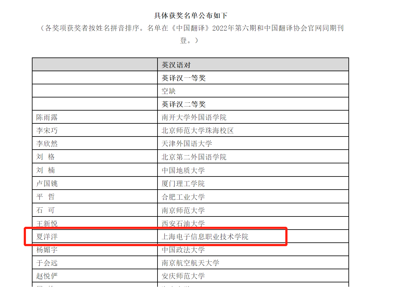 1111MicrosoftInternetExplorer402DocumentNotSpecified7.8 磅Normal0 近日,第三十四届韩素音国际翻译大赛获奖名单揭晓,永利官网外语学院夏洋洋老师在英译汉项目中荣获二等奖佳绩。韩素音国际翻译大赛于1989年创...