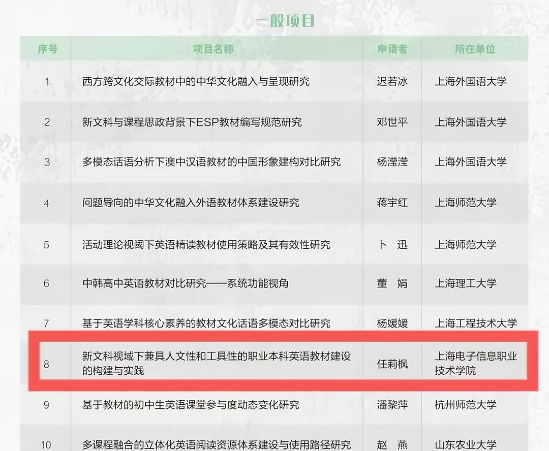 近日,上海外国语大学外语教材研究院“2022年外语教材研究项目”评审结果公布,永利官网外语学院任莉枫教授主持的课题“新文科视域下兼具人文性和工具性的职业本科英语教材的构建与实践”获批立项。该项目共收到网上...