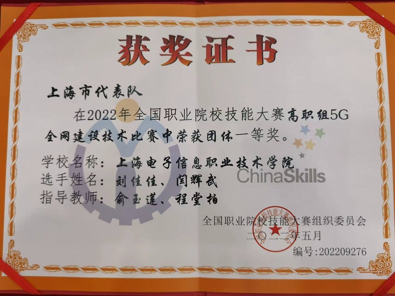 永利官网荣获2022年全国职业院校技能大赛高职组“5G全网建设技术”赛项一等奖