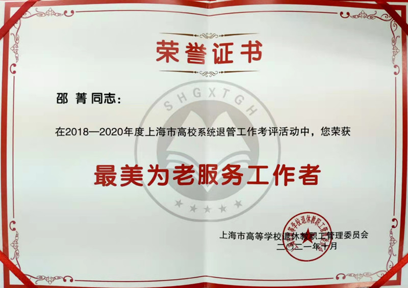 永利官网教工荣获上海市高校退管系统先进个人称号